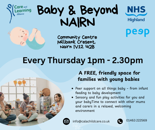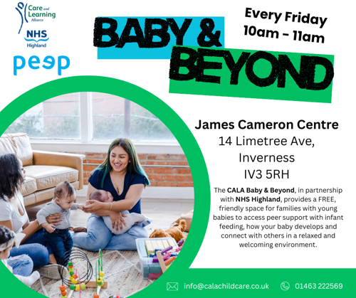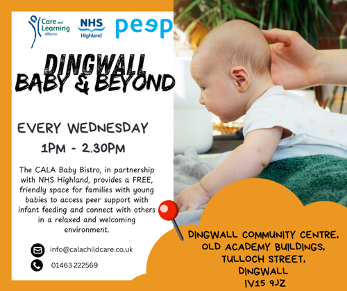 The CALA Baby Bistro, in partnership with NHS Highland, provides a free, friendly space for families with young babies to access peer support with infantĀ feeding, and connect with others in a relaxed and welcoming environment.